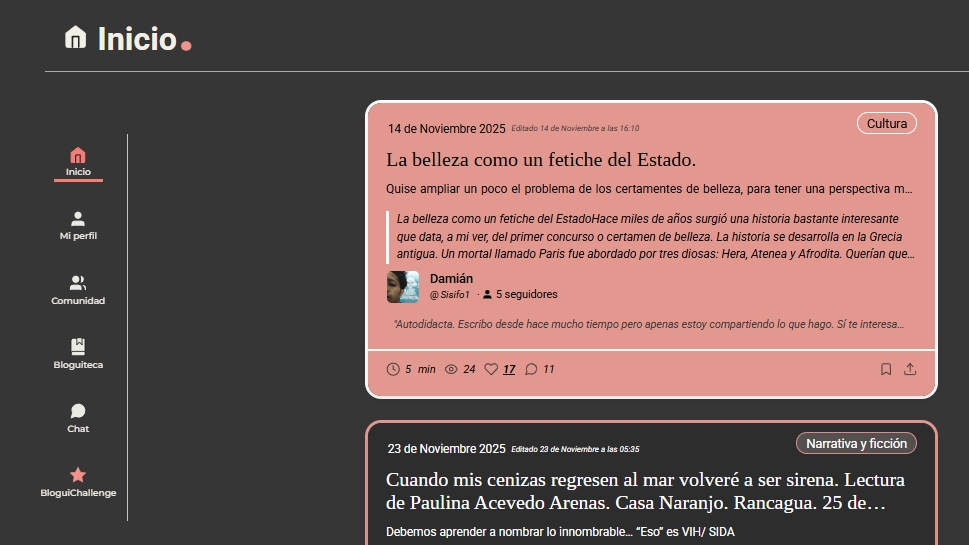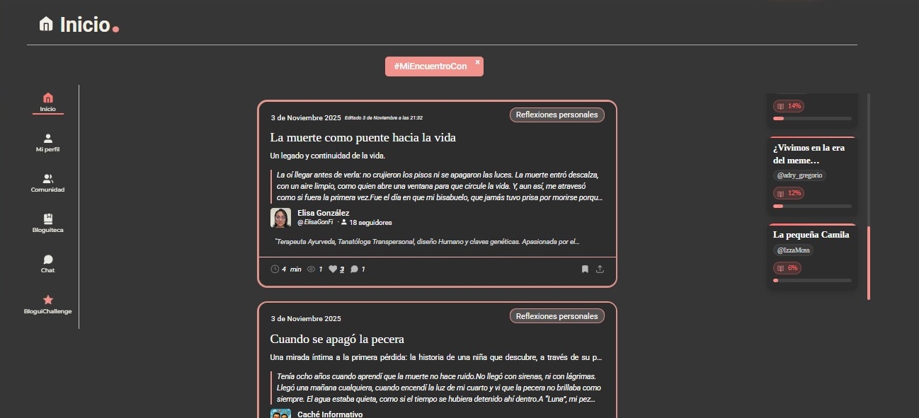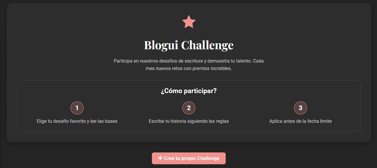 opciones, entre ellas se encuentra la sección de BloguiChallenges, al
