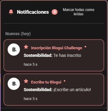Una vez finalizado el BloguiChallenge nos llegará una notificación informándonos que