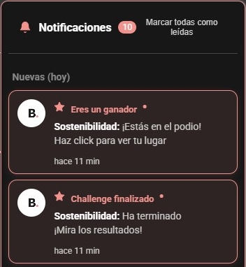 Al inscribirnos en un challenge se nos notificará de nuestra inscripción y nos llegará